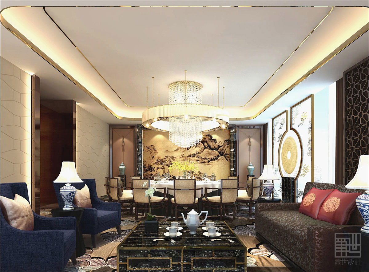為配合和襯托出項目的民族元素,軟裝設計均采用現代中式風格,所設置的框景門窗以及圖案隔柵和屏風作為視覺導向。